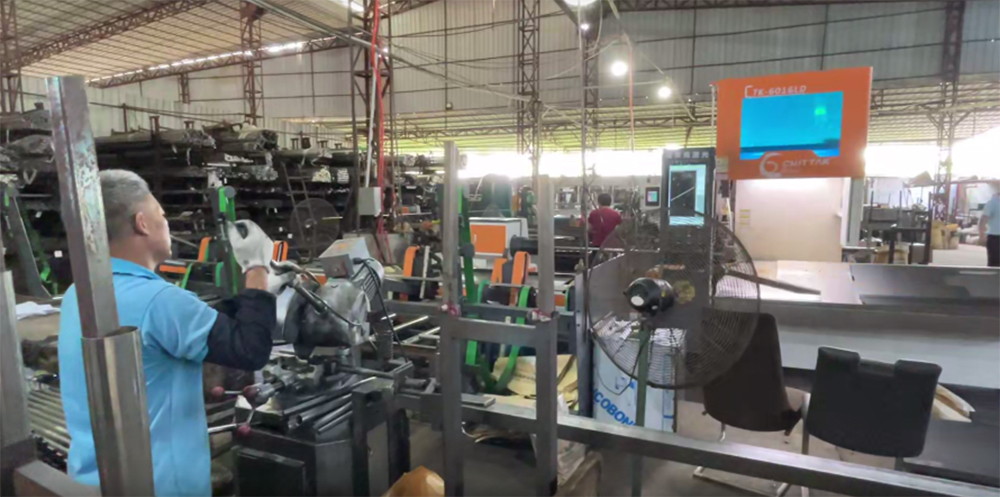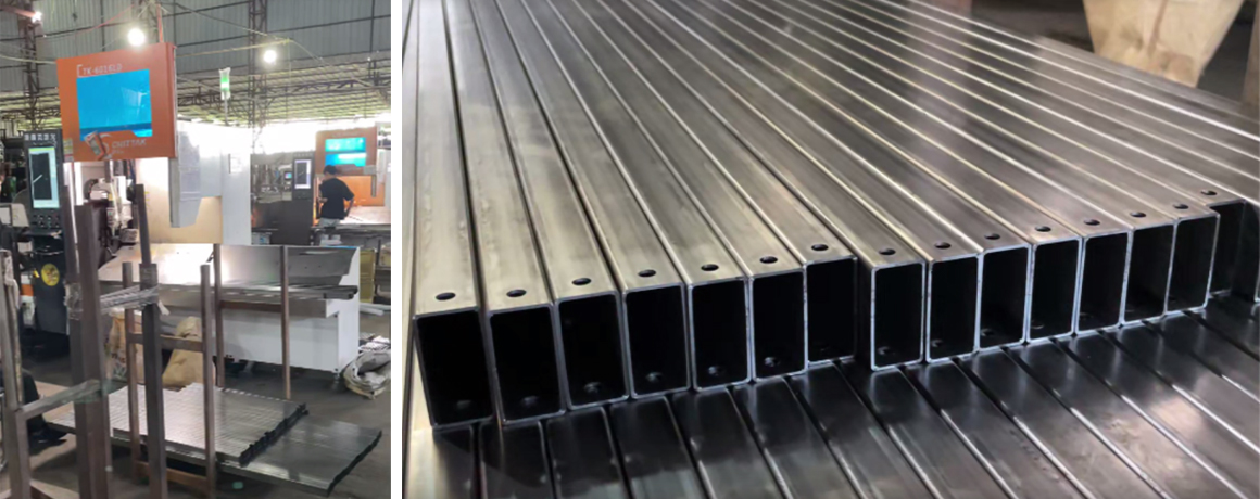 家具行業的金屬管材,尺寸規格多,以小管為主,管材厚度在0.5-1.5mm之間,所以管材本身的剛性強度低,容易受外力變形。傳統的加工工序,如鋸床下料、鋸床加工截面和斜面、沖床沖孔、鉆床鉆孔等,均是通過外力擠壓,管材接觸面易變形,再加上多工序多人的加工流程,往往到最后的成品階段,管材表面已經被劃傷甚至是變形,都需要二次人工修復,耗時費力。